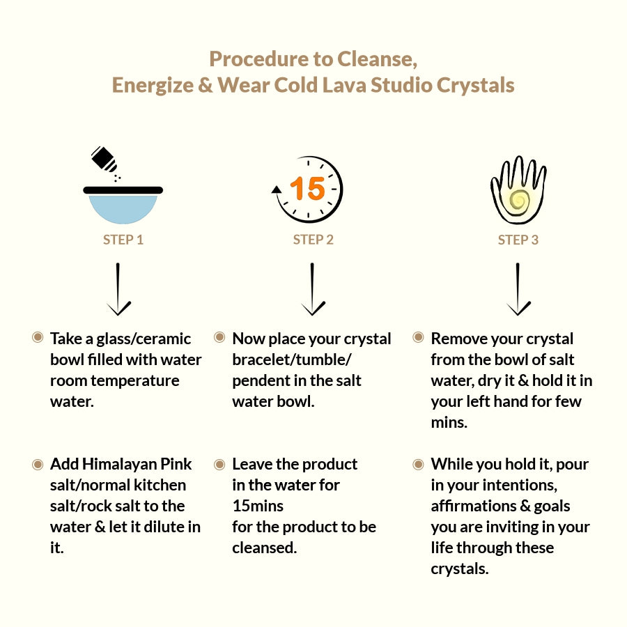3. Wear with Intention: Wear your crystal bracelet regularly for atleast 6 months. Keep it close to your skin / Left side of your body to absorb its energy